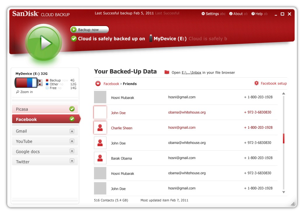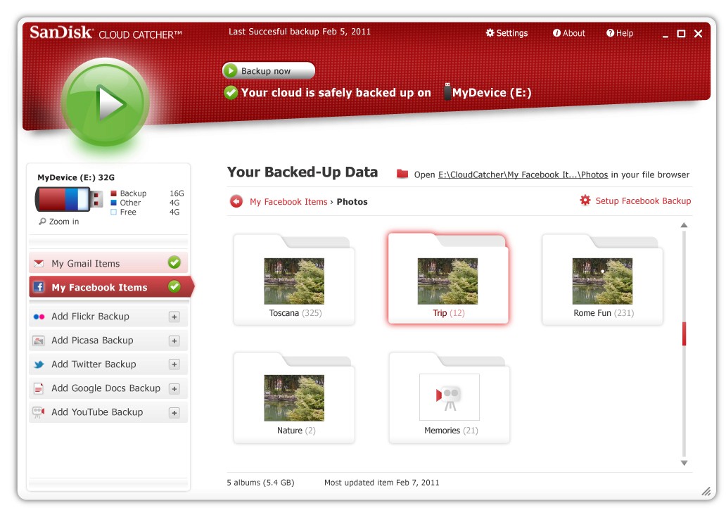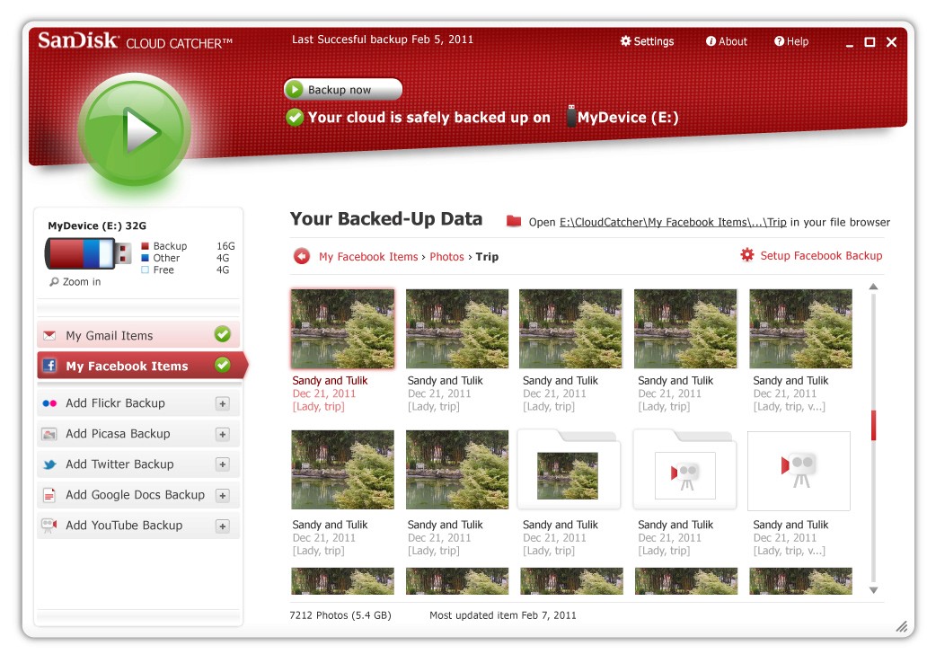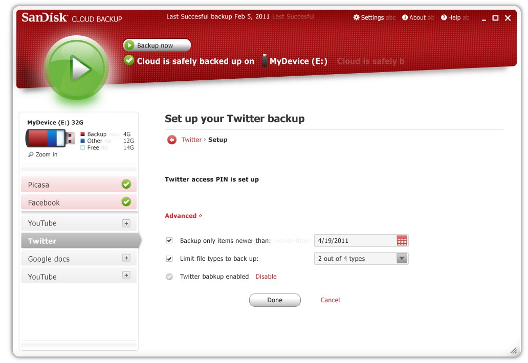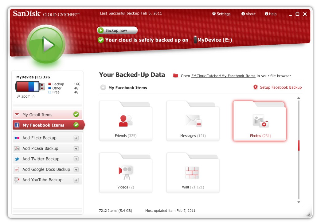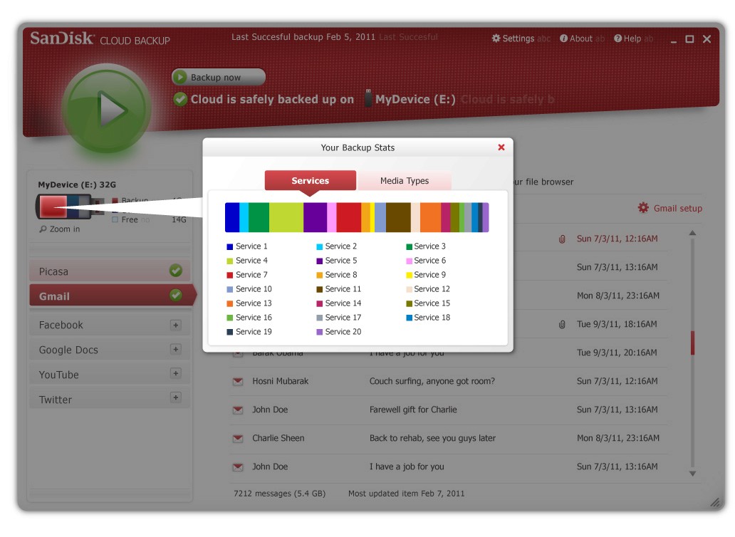UI design for a desktop applicationthat backs up content from social media platformsonto a USB flash drive